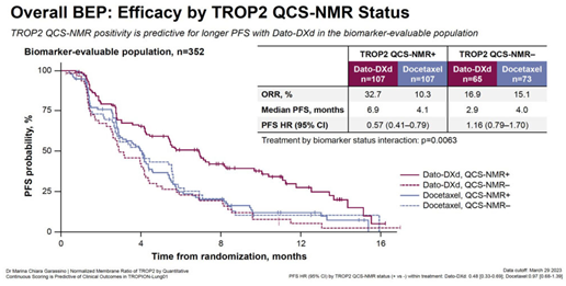 A prominent example is the Phase III TROPION-Lung01 trial.[6] Traditional biomarker methods failed to accurately predict patient response to anti-TROP2 ADCs. To address this limitation, researchers developed a novel, AI-driven Quantitative Spatial Computational pathology score called QCS from whole-slide images, which significantly advanced conventional IHC scoring. This approach went beyond conventional IHC scoring and proved predictive of clinical outcomes, contributing to the success of this late-stage trial.